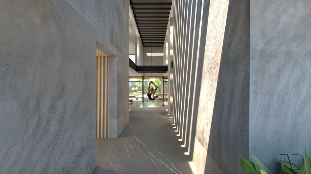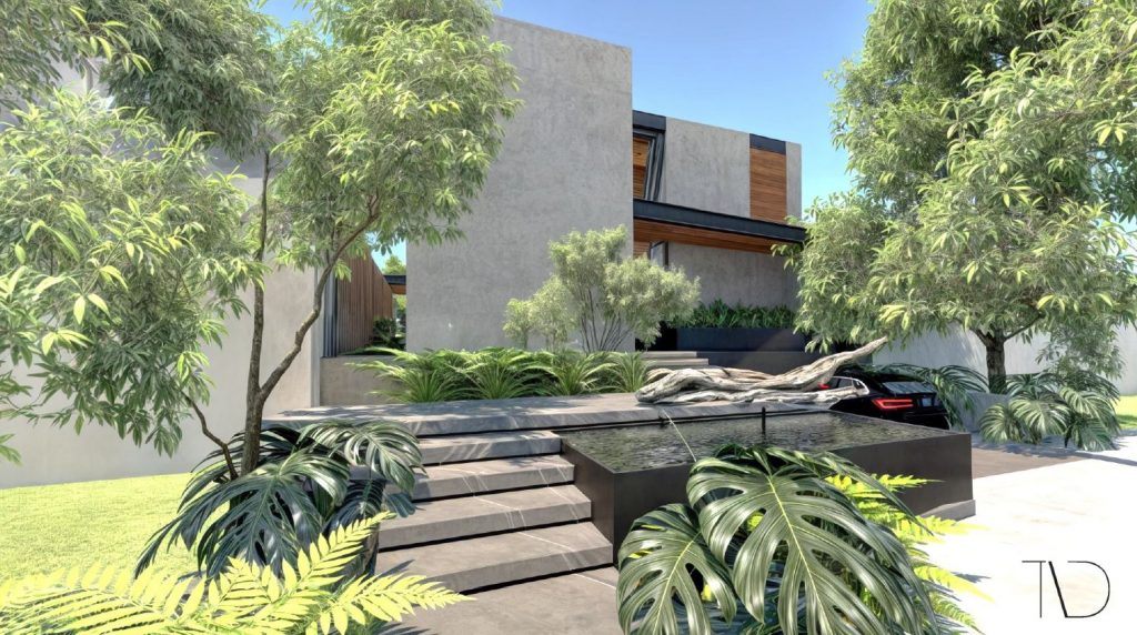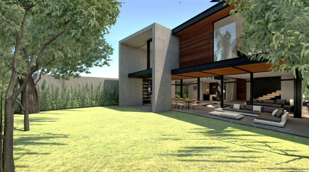 Casa habitación unifamiliar de 740 m2 construidos, aproximadamente, cuenta con un semisótano y tres niveles. Debido a los extensos claros por salvar, se resolvió la estructura con un sistema mixto de muros de carga de concreto y de mampostería con losas reticulares en entrepisos tipo y en zonas de volados.